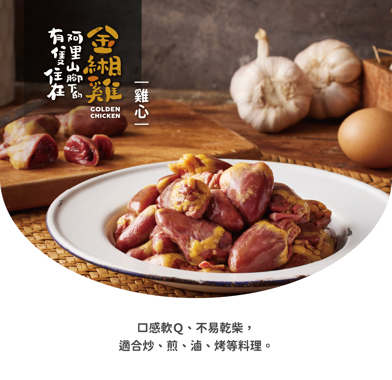 雞心口感嫩Q不乾柴,適合炒、煎、滷、烤等料理。