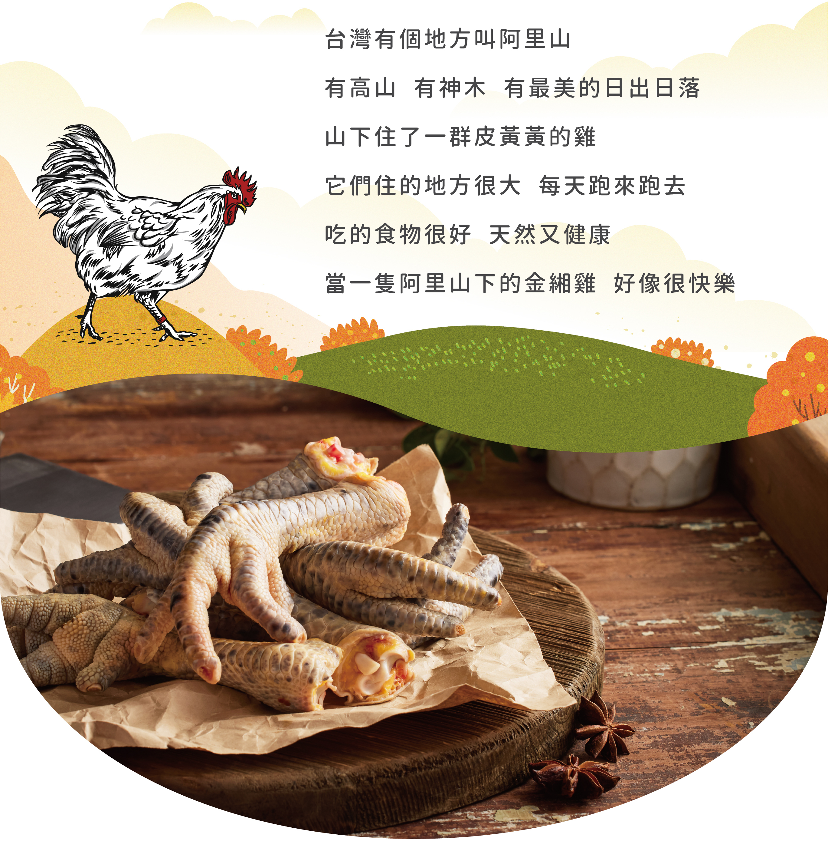 -雞爪上的灰黑色斑點為金緗雞品種特色,又稱為花爪。